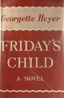 Friday's Child is a novel written by Georgette Heyer in 1944. It is generally considered one of Miss Heyer's best Regency romances, and was reportedly the favourite of the author herself.[1] Heyer retained only a single fan letter, which was from a Romanian political prisoner who kept herself and her fellow prisoners sane for twelve years by telling and retelling the plot of Friday's Child.[1]