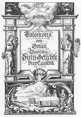 Logau's epigrams, which appeared in two collections under the pseudonym Salomon von Golaw (an anagram of his real name, referring to Gohlau and the Proverbs of Solomon) in 1638 (Erstes Hundert Teutscher Reimensprũche) and 1654 (Deutscher Sinngedichte drei Tausend), show a marvellous range and variety of expression. He had suffered bitterly under the adverse conditions of the time; but his satire is not merely the outcome of personal feeling. In the turbulent age of the Thirty Years' War he was one of the few men who preserved intact his intellectual integrity and judged his contemporaries fairly. He satirized with unsparing hand the court life, the useless bloodshed of the war, the lack of national pride in the German people, and their slavish imitation of the French in customs, dress and speech.
