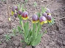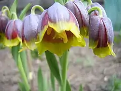 Fritillaria michailovskyi is a species of flowering plant in the lily family Liliaceae, native to mountainous areas of northeastern Turkey. It is a bulbous perennial growing to 10–20 cm (4–8 in) tall, with narrow strap-shaped leaves and nodding umbels of distinctive, pendent, bell-shaped maroon flowers with yellow tips in spring.[2][3][4]