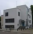 The retreat house and the Glaspaleis are good examples of a new phase in his building style that he developed after entering a competition to design the Palais des Nations in Geneva (1926), this new style accumulated in the Town hall of Heerlen.