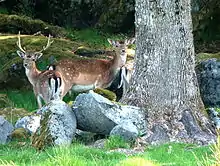 Fritzøehus is located in Fritzøehus park, which today is a designated conservation area for the purpose of preserving the large beech forests and the distinctive landscape. In the 1,700-acre (6.9 km2) park there are also walnut, fir, and spruce trees. The park was built in the English style in the 1860s. In the courtyard stands a water fountain and a sculpture of a bear by sculptor Anne Grimdalen (1899–1961). The park includes a collection of fallow deer and mouflon from the Mediterranean.[6][7]