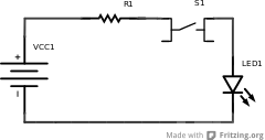 ![]() Breadboard view of a simple circuit, drawn with Fritzing. |
