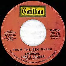 "From the Beginning" is a song written by Greg Lake and performed by the progressive rock trio Emerson, Lake & Palmer. It was released on their 1972 album Trilogy. It hit #39 in the United States and was their highest charting single there.[1]