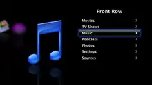 Front Row is a discontinued media center software application for Apple's Macintosh computers and Apple TV for navigating and viewing video, photos, podcasts, and music from a computer, optical disc, or the Internet through a 10-foot user interface (similar to Kodi and Windows Media Center). The software relies on iTunes and iPhoto and is controlled by an Apple Remote or the keyboard function keys. The first version was released October 2005, with two major revisions since. Front Row was removed and discontinued in Mac OS X 10.7.[1]