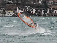 Front loop is the name given to a trick performed by a windsurfer (also known as a forward loop) whereby the rider performs a jump from a wave face and forces the sail, board and rider to perform a forward somersault in one motion. In its basic form, the rider's hands maintain their position on the boom and the rider's feet maintain their position on the board. Some consider the forward loop to be one of the harder intermediate moves to learn as it goes against most learned reactions whilst sailing.