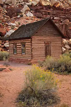 The Behunin family, early settlers of the Capitol Reef area, donated the land in 1892. For over a decade the school had a dirt roof and in 1935 the bare walls were chinked in.[1] Elijah Cutler Behunin donated the land for the school and his daughter, Nettie Behunin, was the school's first teacher. In 1895 the school became part of the Junction School Precinct and remained a functional grade school until 1941. From 1941 until its induction into the U.S. National Register of Historic Places in 1973, the building was unoccupied.[2]