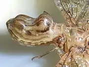 Fulgora laternaria can reach a length of 85–90 millimetres (3.3–3.5 in), with a wingspan up to 100–150 millimetres (3.9–5.9 in). This insect has a protuberance at its head as long as 10–15 millimetres (0.39–0.59 in), looking like a peanut and showing false eyes to resemble that of a lizard or a serpent. The insect was originally - and mistakenly - believed to be luminescent. When attacked, it protects itself by displaying large, yellow, fake eyes on its hind wings to frighten the aggressor, and releases a foul-smelling substance. Adults can be found from June to December. They feed on the sap of plants, mainly from some trees as Hymenaea courbaril, Simarouba amara and Zanthoxylum species. It will generally remain camouflaged on a tree trunk during the day.[1][2]