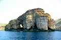 Fungus Rock, sometimes known as Mushroom Rock,[2] and among the Maltese as Il-Ġebla tal-Ġeneral (English: The General's Rock), is a small islet in the form of a 60-metre-high (200 ft) massive lump of limestone at the entrance to an almost circular black lagoon in Dwejra, on the coast of Gozo, itself an island in the Maltese archipelago. It is located at 36°02′45″N 14°11′27″E and falls within the jurisdiction of the town of San Lawrenz.