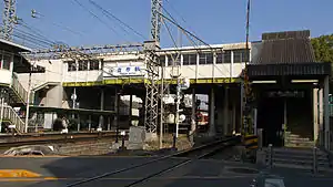 The station was consists of two ground-level island platforms connected by an elevated station building.