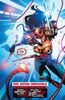 Helena Kosmatos was a new character named "Fury", created to replace the Golden Age Wonder Woman as Lyta Trevor's biological mother.[8] She began appearing in Thomas' Young All-Stars, a book set in World War II, and her backstory was revealed in Secret Origins #12. She was a Greek national who had learned her brother was co-operating with Italian Fascists who previously killed her father. When she confronted her brother with this revelation in front of their mother, it was too much for the widow to take and she died of an instant heart attack. Wishing revenge upon her brother, she was approached by Tisiphone, one of the Eumenides or Furies, who gave her a suit of magic armor, which increased her strength, speed and stamina. When angered, she became an avatar of Tisiphone, and it was in this state that she killed her brother.[8]