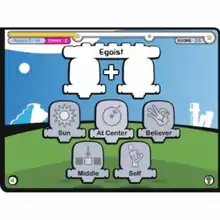 Like the SATs, futureU has three sections: Reading, Writing, and Math, each with two subdivisions. Reading has a Glyph mode, which gives the player a word that has a prefix and a suffix. Next to the word are several images that can be used to construct the word. In the other Reading mode, Predictions, sentences with two words missing are shown to the player, who must fill in the blanks.[3]