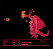 Towns are visited in-between stages to provide the player with weapons and artifacts that are bought with the in-game gold currency.[3] Players can choose to backtrack to either a previous stage while staying at the inn or to a stage that he has not yet explored. They also have access to three different kinds of healing spells: Riken (minor healing), Rikento (normal healing) and Rikentaru (major healing).[4]