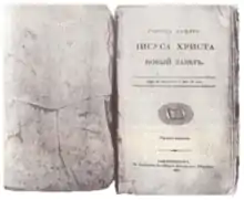 According to an officer at the military academy, Dostoevsky was profoundly religious, followed Orthodox practice, and regularly read the Gospels and Heinrich Zschokke's Die Stunden der Andacht ("Hours of Devotion"), which "preached a sentimental version of Christianity entirely free from dogmatic content and with a strong emphasis on giving Christian love a social application." This book may have prompted his later interest in Christian socialism.[139] Through the literature of Hoffmann, Balzac, Eugène Sue, and Goethe, Dostoevsky created his own belief system, similar to Russian sectarianism and the Old Belief.[139] After his arrest, aborted execution, and subsequent imprisonment, he focused intensely on the figure of Christ and on the New Testament: the only book allowed in prison.[140] In a January 1854 letter to the woman who had sent him the New Testament, Dostoevsky wrote that he was a "child of unbelief and doubt up to this moment, and I am certain that I shall remain so to the grave." He also wrote that "even if someone were to prove to me that the truth lay outside Christ, I should choose to remain with Christ rather than with the truth."[141]