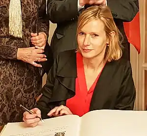 As a daughter of a French mother and a German father, Schwarz defines herself as "a child of German-French reconciliation" and "a committed European".[1] She grew up in the Paris area and attended the Lycee International de Saint-Germain-en-Laye from 1985 to 1992.,[2] where she passed her abitur exam at the German department in 1992. From 1993 to 1997 she studied history at the Sorbonne and at the London School of Economics. In 1997 she joined the Paris Journalist School Centre de formation des journalistes de Paris" (CFJ). At the age of 25 she worked for Bloomberg News in Paris and became a correspondent for Agence France Press in Berlin. Ten years later, she took leave from news journalism. Since 2010, she has been publishing and appearing in various international media. She also makes documentary films. Her extensive documentary essay Les Amnésiques was published in France in 2017 and was awarded the European Book Prize in 2018.