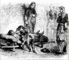 After the Battle of Bautzen (20–21 May 1813), the Grande Armée made a slow pursuit of Allied forces. At Reichenbach on 22 May 1813, a cannonball ricocheted off a tree-trunk, hit Duroc in the stomach, tore open his belly and spilled out his intestines in a gory mess over uniform, saddle and horse,[3] which Napoleon witnessed. Whilst Duroc lay dying inside a farmhouse, he requested Napoleon's presence where he apologised to the Emperor for not being able to serve him further, asked him to be a father to his daughter, and then requested him to withdraw so that he was not present at the moment of death.[4] Napoleon bought the farm and erected a monument to his memory.