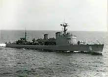 In 1933 the Swedish government granted the construction of two new destroyers.[1] The destroyers were given names of Swedish coast towns and so this class was called Stadsjagare ("Town-class destroyers"). The first ship was delivered in 1936 and the second in 1937. In 1936 two additional destroyers were ordered and after the war broke out a third pair was ordered as well.[2] After the war all destroyers except Göteborg which was in poor shape from the Hårsfjärden disaster received a refit where the center gun was moved to the X position on the aft deckhouse and the anti-aircraft armament (consisting of four modern Bofors 40 mm L/70 guns) was concentrated on a platform around the rear funnel. In 1958–1963 three of the destroyers were rebuilt as frigates that included a change of armament. The first ship to be decommissioned was Göteborg in 1958. In the decade that followed all ships were decommissioned, the last in 1968.