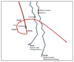 Lastly he met with his former commanding officer in Norway, Marschall. He advised Lütjens not to follow Raeder's orders too closely since the situation in the Atlantic could change at any moment. Lütjens would not hear of it. He refused to diverge from his standing orders. He reminded Marschall that two fleet commanders had already been removed from command—Marschall being one of them—and that he would follow the orders given him.[62] What depressed Lütjens's already darkened mood was Ernst Lindemann, Bismarck's captain, had been told by Karl Topp of the Marineamt, that several war games were run to see if Tirpitz could reach the Atlantic undetected and that at every turn and under every circumstance, the ship was discovered. Lindemann certainly would have passed this information to Lütjens.[63]