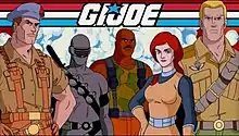 G.I. Joe DVD header - From left to right: Flint, Snake Eyes, Roadblock, Scarlett and Duke