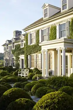 Several later projects demonstrate the firm's creation of organic, architectural mythologies in new constructions.[36][52] Architectural Digest described the amalgam of styles at Longfield Farm (Dutchess County, New York, 2006) as embodying "a picturesque historical narrative" of successive additions—Colonial Revival main house of rugged fieldstone, Federal-style wing, neo-Victorian carriage barn, and Greek Revival entry portico and back porch—blended into a "transcendent whole."[36] New Plantation Residence (South Georgia, 2016) combines an "original" mid-19th-century Greek Revival structure with what appears to be a 1930s Colonial Revival hunting lodge addition.[35][27]