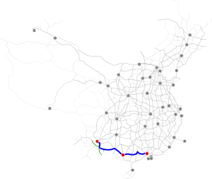 The Guangzhou–Kunming Expressway (Chinese: 广州—昆明高速公路), commonly referred to as the Guangkun Expressway (Chinese: 广昆高速公路) is an expressway that connects the cities of Guangzhou, Guangdong, China, and Kunming, Yunnan. When complete, it will be 1,511 km (939 mi) in length.