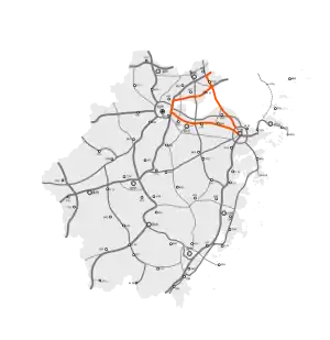 The Hangzhou Bay Ring Expressway (simplified Chinese: 杭州湾环线高速; traditional Chinese: 杭州灣環線高速), officially the Hangzhou Bay Region Ring Expressway (simplified Chinese: 杭州湾地区环线高速公路; traditional Chinese: 杭州灣地區環線高速公路) and designated G92,[2] is an expressway in China that connects the city of Shanghai to the cities of Hangzhou and Ningbo in the neighbouring province of Zhejiang. Part of its route traverses the Hangzhou Bay Bridge. It is 427 km (265 mi) in length.