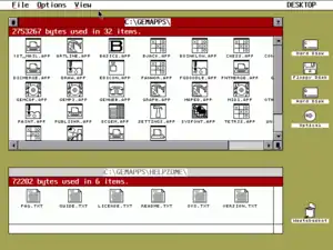 A new module, GEM AES (Application Environment Services), provided the window management and UI elements, and GEM Desktop used both libraries in combination to provide a GUI.[12] The 8086 version of the entire system was first demoed at COMDEX in November 1984,[4][3] and shipped as GEM/1 on 28 February 1985.[1]
