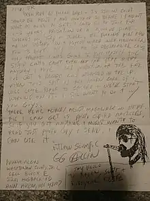 {{cite web}}: CS1 maint: archived copy as title (link) - GG Allin ggallinonline.com (October 31, 1990). "Text of the manifesto". Ggallinonline.com. Retrieved February 24, 2009.