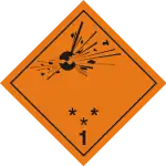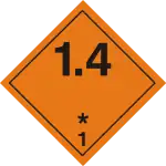 Explosives – Very insensitive substances which have a mass explosion hazard Note: The asterisk is replaced by the compatibility code | |