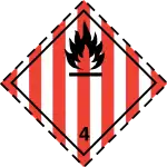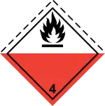 Flammable solids, self-reactive substances and solid desensitized explosives – Solids which, under conditions encountered in transport, are readily combustible or may cause or contribute to fire through friction; self-reactive substances which are liable to undergo a strongly exothermic reaction; solid desensitized explosives which may explode if not diluted sufficiently | ||