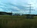 Switchyard of former GKK Etzenricht. On the right the pylon by which the powerline to Czech runs, left from this the valve hall, on the left the only remaining AC filter