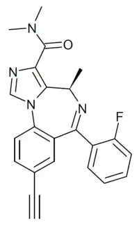 GL-II-73 (GL-ii-073) is a benzodiazepine derivative related in chemical structure to compounds such as midazolam, adinazolam and the active metabolite of rilmazafone. It is described as an α5 preferring positive allosteric modulator of the benzodiazepine site of GABAA receptors, with weaker activity at α2 and α3 and no significant affinity for the α1 subtype. In animal tests it was found to produce effects consistent with antidepressant, anxiolytic and nootropic actions.[1][2][3][4]