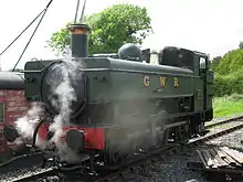 The GWR 0-6-0PT (Pannier Tank), is a type of steam locomotive built by the British Great Western Railway with the water tanks carried on both sides of the boiler, in the manner of panniers. They were used for local, suburban and branch line passenger and goods traffic, for shunting duties, and as banker engines on inclines. The early examples, such as the 1901 and 2021 classes, were rebuilt from saddle or side tanks when the locos received a Belpaire firebox – this type of firebox has a square top and is incompatible with a curved saddle tank. This process mostly took place during the tenure at Swindon Works of George Jackson Churchward. Only a very small number of saddle tank locomotives escaped rebuilding as panniers, notably the 1361 Class built new under Churchward in 1910, by which date a few of the 1813 Class had already been rebuilt as pannier tanks.