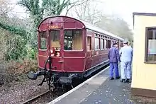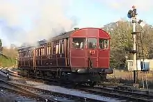 In June 2012 No. 93 was approved for main line operation, even though the re-introduction of wooden bodied vehicles had not been allowed for many years, and was subject to restrictions to reduce the possibility of collisions and any subsequent damage.[10] Since then No. 93 has run on various railways including the Bodmin and Wenford, the South Devon, and the Looe branch (Network Rail).[11][12]
