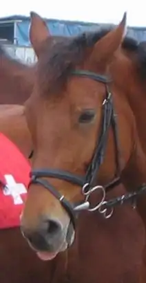 Gag bits are also occasionally seen in western-style competition, usually in the form of a sliding mouthpiece on a shanked curb-style bit (similar to the American gag).