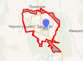 Gagarin (Russian: Гага́рин), known until 1968 as Gzhatsk (Гжатск), is a town and the administrative centre of Gagarinsky District of Smolensk Oblast, Russia, located on the Gzhat River, 240 kilometers (150 mi) northeast of Smolensk, the administrative centre of the oblast. Population: 31,721 (2010 Census);[4] 28,789 (2002 Census);[10] 28,867 (1989 Census).[11]