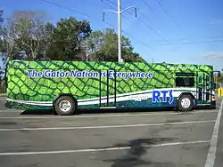 Gainesville Regional Transit System is the local area transit corporation that serves the Gainesville, Alachua County, Florida area, the University of Florida and Santa Fe College campuses. It presently serves 40 city routes (19 on Saturdays, 16 on Sundays), 10 campus routes, and five "Later Gator" routes. Paratransit (ADA) service is also provided to anyone with a Gainesville address.
