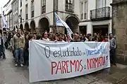 The Galician Student League has clear ideological position and rejects apoliticism. The organization openly defines itself as socialist, "independentist" and feminist[10] and participates in acts of non-student character, as nationalist, language, labor and feminist protests.