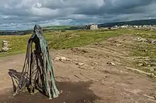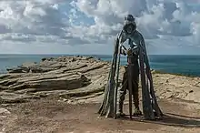 The sculpture has become a popular attraction at the castle site.[7] The statue has been popularly associated with Arthur and has commonly become known as the "King Arthur Statue".[3][4] However, English Heritage states that it is not a depiction of a single person, and is inspired by the likely use of the site as a summer residence for the kings of the sub-Roman state of Dumnonia as well as the Arthurian legend.[4] They prefer that the viewer makes their own interpretation of the work and consider that the sculpture may represent something more than a human.[4][8] The name "Gallos" is Cornish for "power".[4]