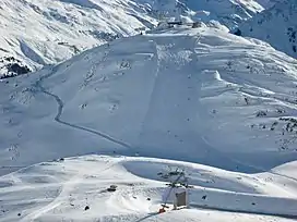 Galzig is a mountain in the Lechtal Alps of Tyrol, Austria. The elevation at its peak is 2,184 metres (7,165 ft). Located near St. Anton am Arlberg, it is a popular hiking and skiing destination, depending on the season.
