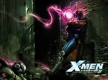 - He is a playable character in its sequel, Marvel: Ultimate Alliance 2, voiced by Michael Dunn.[1][38] His Horseman of Apocalypse costume serves as his alternate. In the Wii, PSP, and PS2 versions, he is unlocked via simulator disc. Gambit is seen comforting Ms. Marvel at the funeral service for the missing and presumed deceased superheroes.