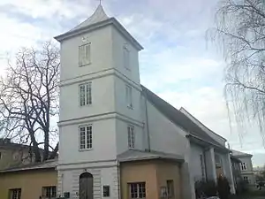 Gamlebyen Church is a private church, belonging to Oslo University Hospital and is also called Oslo Hospital's Church, located in the old town[1] of Oslo, Norway. It is leased to the Diocese of Oslo of the Church of Norway and serves as the parish church for the Gamlebyen parish in Oslo. Up to 1925 it had the name Oslo Church, but when the city changed its name from Kristiania to Oslo, the church got the present name. The present church building is listed in 1796 partly on the foundations of the Franciscan monastery church built around 1290.[2][3] The church is located at the foot of the north-facing slope Ekeberg, across the street from the Gamlebyen Cemetery.[4] The chapel at the cemetery is abandoned as a burial chapel and leased to the Ethiopian community in Oslo. At funerals, the church itself is now used instead.