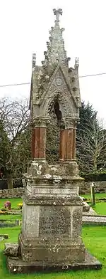 The parish church, which is within the Church of England Diocese of Hereford, is dedicated to St Swithin.[10] A Grade II listed building,[11] it was rebuilt[12] in about 1850 by John Prichard. The graveyard contains a Gothic pinnacle[13] memorial to the Bannerman family who lived nearby at Wyastone Leys.