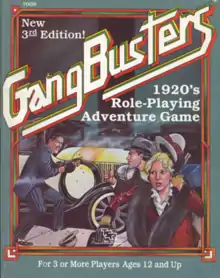 Gangbusters was a historical roleplaying game designed by Rick Krebs (based on his original game called "Bloody 20's") with Mark Acres assisting in its development.[1] The game was published by TSR, Inc. Two editions of the game were published. The first edition of the game was published in 1982.[2]