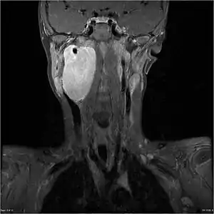 | MRI of a ganglioneuroblastoma found in the head and neck of a 7 year old Caucasian male. | |