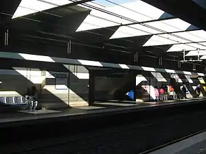 Garbatella is a station on the Line B of the Rome Metro. It was opened in 1990 and is located behind the former Mercati Generali di Roma, on the via Ostiense in the Ostiense quarter. It replaces the old Garbatella station 200m away, whose entrance was on Piazza Giancarlo Vallauri (the present one is accessed from Via Giacinto Pullino).