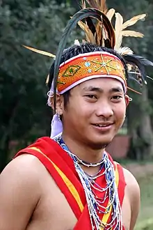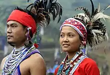 ![]() A Garo couple in traditional dress | |