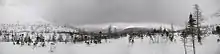 Owing the area's elevation and proximity to the Saint Lawrence River, the climate of the park is very different from the lowlands of Quebec. Mount Logan, at an altitude of 1,150 m (3,770 ft), has an average annual temperature of −3.6 °C (25.5 °F). This low temperature, combined with the lower pressure at high altitude, causes moisture to condense and fall as rain or snow; in fact, these mountains are the wettest region of Quebec.[3]
