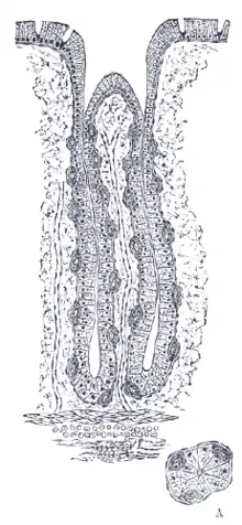 ![]() Gastric glands shown at c and their ducts at d | |