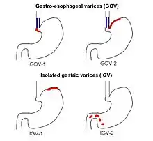 The Sarin classification of gastric varices identifies four different anatomical types of gastric varices, which differ in terms of treatment modalities.[4]