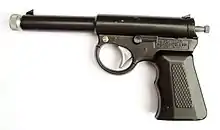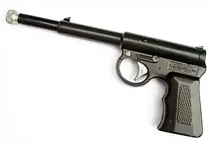 A similar mechanism, although with rather better build quality and wooden grips, was used for the German-made Hy-Score 814 pistol and Diana Model 2.[3]